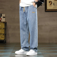 These men’s drawstring wide leg jeans deliver a perfect fusion of modern streetwear and laid-back comfort. Designed with a relaxed fit, they offer effortless movement while maintaining a trendy silhouette, making them ideal for casual outings or off-duty looks.