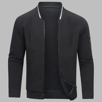 Stay warm and stylish with this versatile men’s zip-up knit sweater.